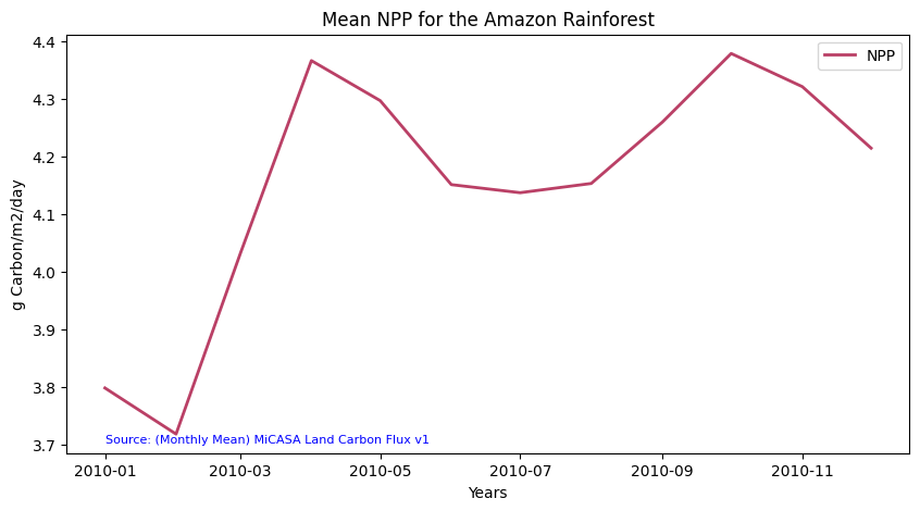 - Generate a time-series graph of the Net Primary Production (NPP) values for a specified region